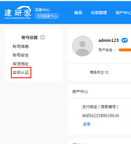 2、进入“个人中心”后,点击“实名认证”—> 进入认证界面,如下图所示: